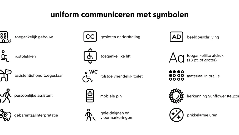 Stichting Accessibility heeft een start gemaakt. Samen met de overheid, belangen- en brancheorganisaties, experts en gebruikers werken zij aan de landelijke uitrol naar de hele recreatiesector van de eenduidige communicatiestijl. Deze bouwt voort op de set symbolen die werd ontwikkeld voor de musea in Amsterdam.