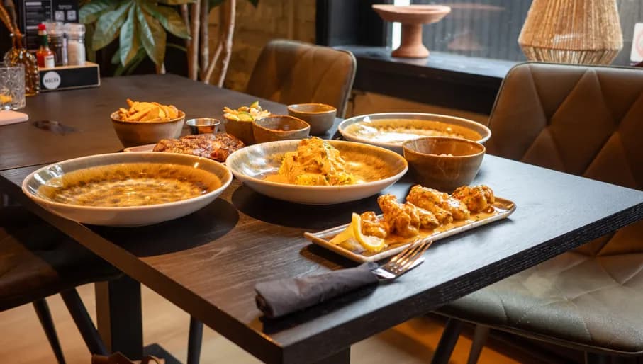 Situated below a run-down garage near the Bullewijk metro station, this Nigerian eatery offers an authentic slice of West Africa with a raw, no-frills charm. Specializing in suya, a flavourful Nigerian street food of skewered, spice-marinated grilled meat with ginger, ground peanut and onions, it’s a go-to spot for neighbourhood locals who mostly pop in for takeout or a quick, casual meal. The hearty goat pepper soup is a highlight: perfectly spiced and bursting with meaty flavour. Wash it down with malt drinks, Nigerian beers or bright orange African Fanta. Despite the setting, or perhaps because of it, Obelade Suya delivers an experience as genuine as its vibrant African heritage.