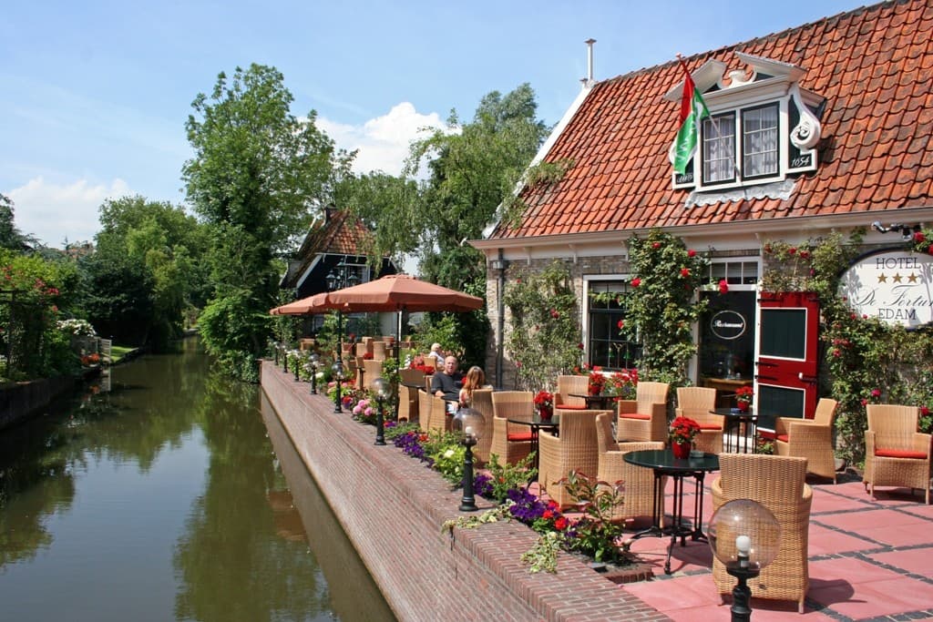 Hotel & Restaurant de Fortuna is a three star hotel, consisting of five restored, 17th century canal houses, built around a quiet and leafy terrace garden on the waterfront. The hotel is in Edam, located near many places of interest.