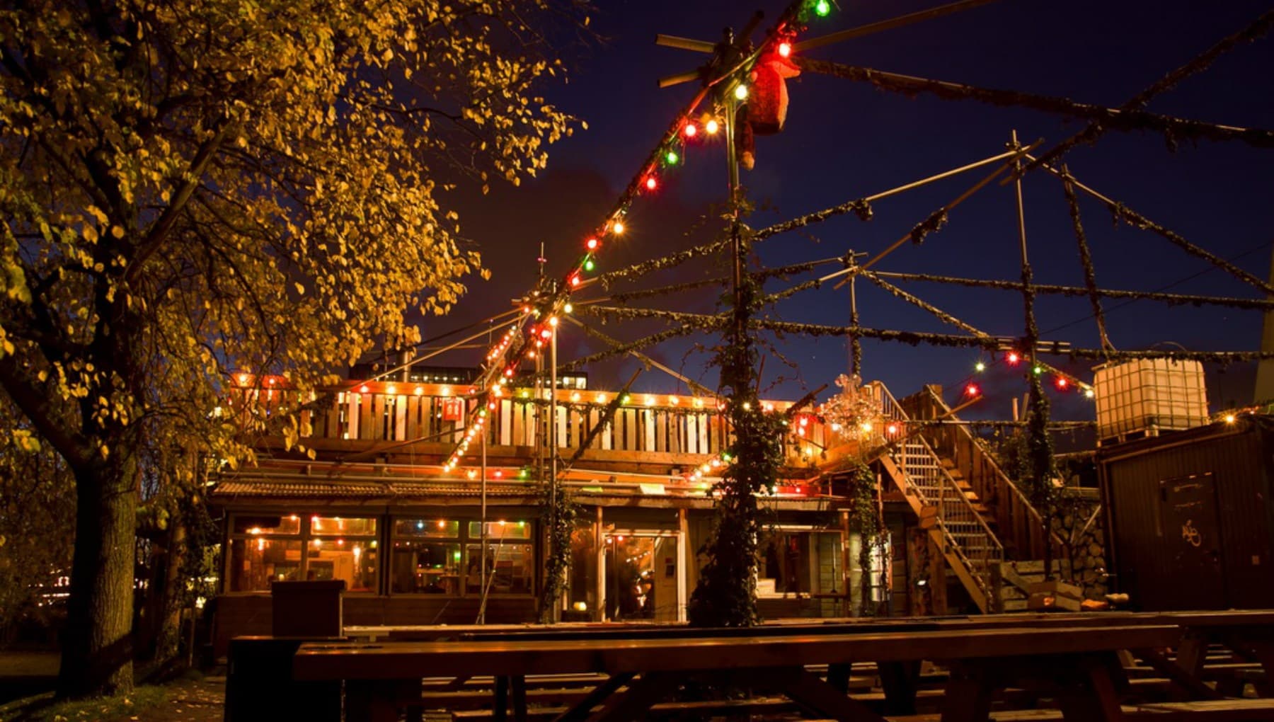 Constructed from reclaimed wood and salvaged materials, this shack-style, waterfront cafe near Central Station exudes bohemian charm.