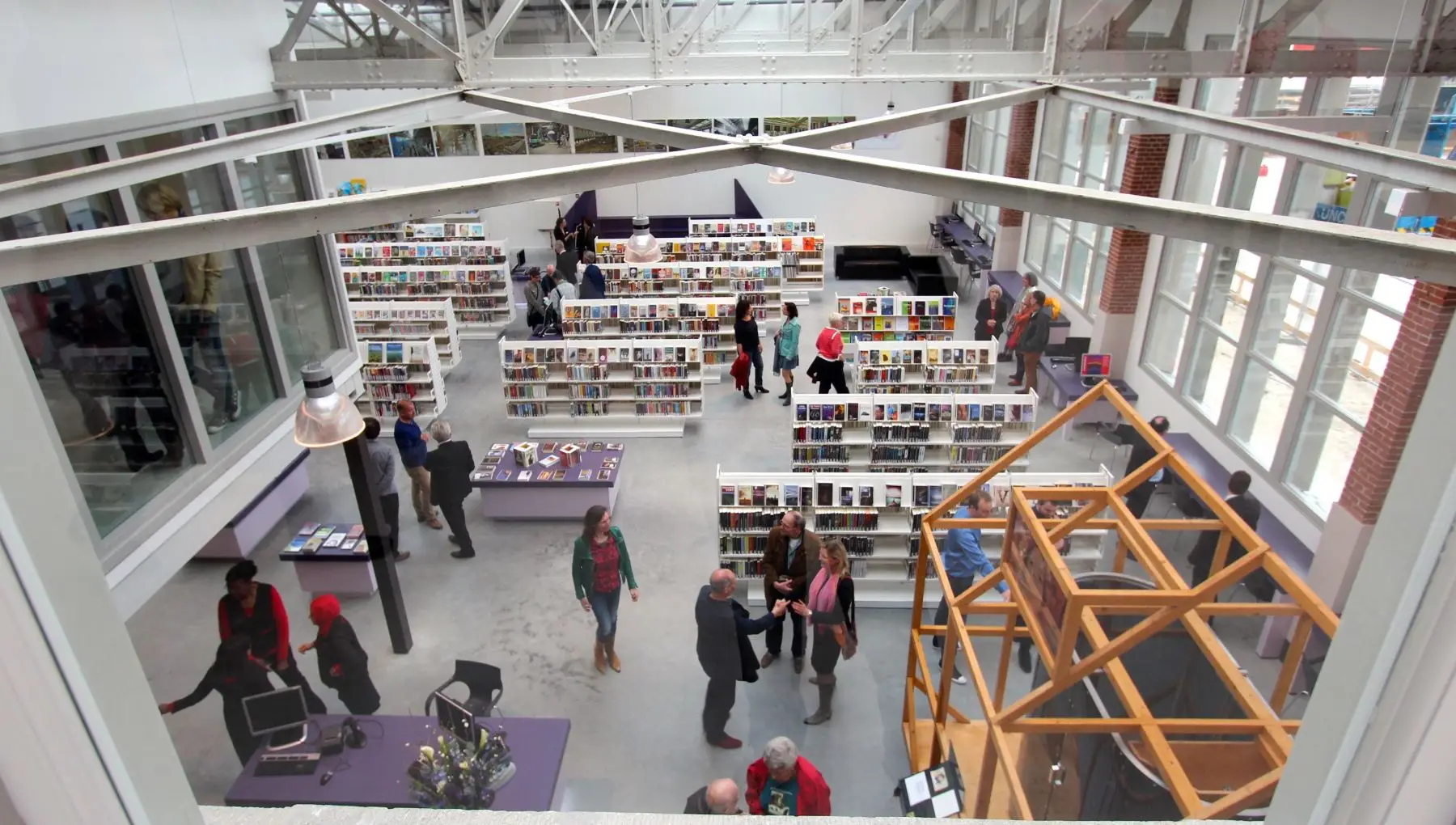 De ingang van OBA De Hallen bevindt zich aan de Tollenstraat, bij leescafé Belcampo. Hier geniet je van een goede kop koffie met lekkers. Dit bijzondere complex, gevestigd in een oude tramremise, is een bruisende plek vol creativiteit en cultuur, waar onder andere een filmhuis, een hotel, diverse winkels, en eetgelegenheden te vinden zijn. OBA De Hallen is dus meer dan alleen een plek om boeken te lenen: het is een ontmoetingsplaats voor mensen, verhalen, en ideeën.