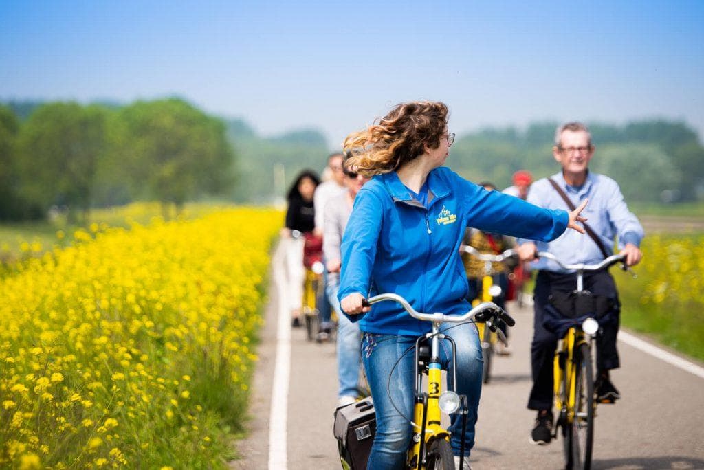 Binnen vijf minuten ben je de stad uit en fietst u door het mooie en beroemde Noord-Hollandse landschap. Een vriendelijke gids leidt de groep van maximaal 15 personen op ontspannen wijze over de prachtig gelegen fietspaden naar het hart van dit land van dijken en water. Je fietst niet alleen op dijken maar ook op herwonnen land op 5 meter beneden zeeniveau! De gids zal je onder andere vertellen hoe onze voorouders hier een voortdurende strijd tegen het water voerden. Zelfs nu nog is het in dit gebied letterlijk pompen of verzuipen.