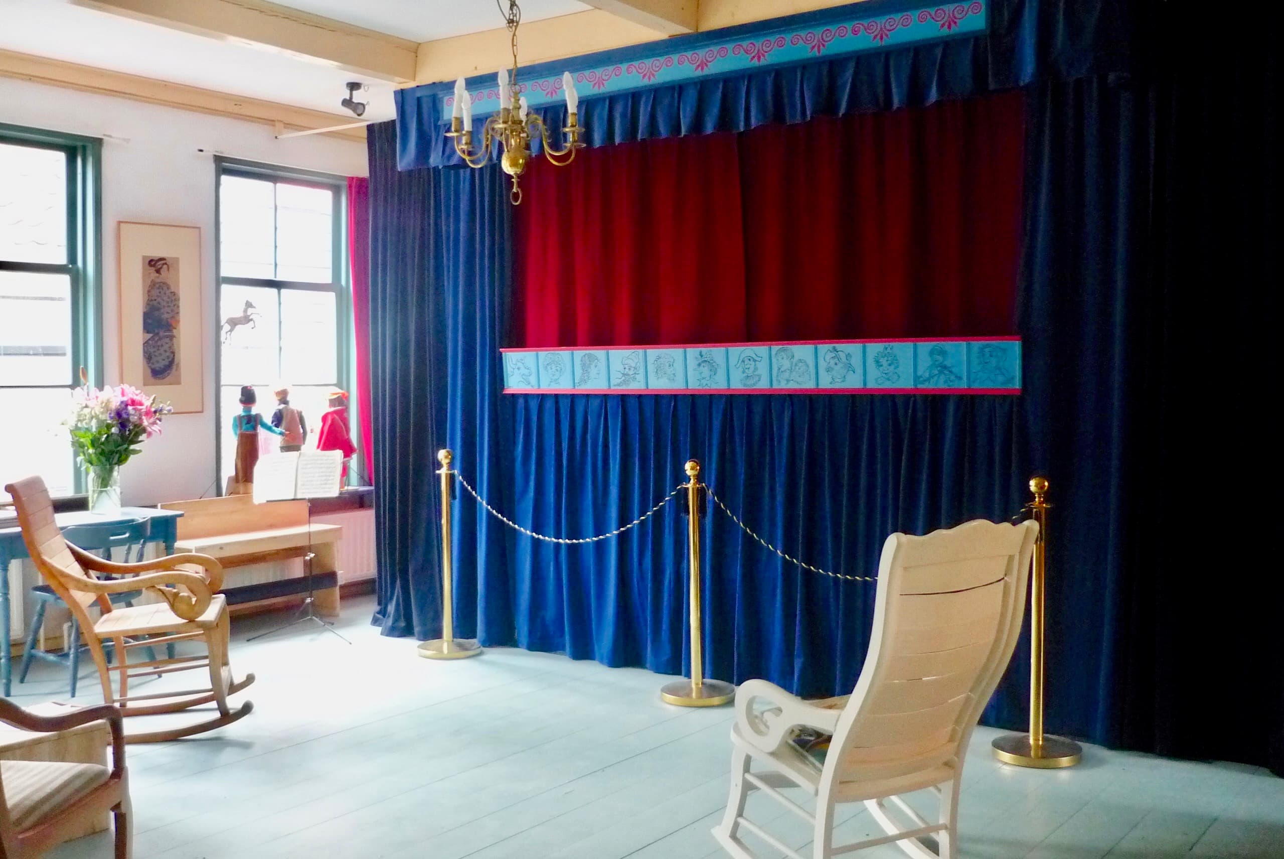 Toen mannen nog grote pruiken droegen, mensen op reis gingen met koetsjes of de benenwagen en kinderen bij kaarslicht leerden schrijven met een ganzenveer, werd dit grote huis gebouwd waar nu de vele mooie poppen van Het Nederlands Marionettentheater wonen. Elk weekend en in de schoolvakanties mogen zij het toneel op om voor jullie op te treden. De opa’s en oma’s van júllie opa’s en oma’s keken vroeger al met veel plezier naar dit beroemde theater dat ook vaak op de TV kwam. De kinderen van nu en hun ouders zullen vast weer net zo genieten van de nieuwe, prachtige spannende voorstellingen.