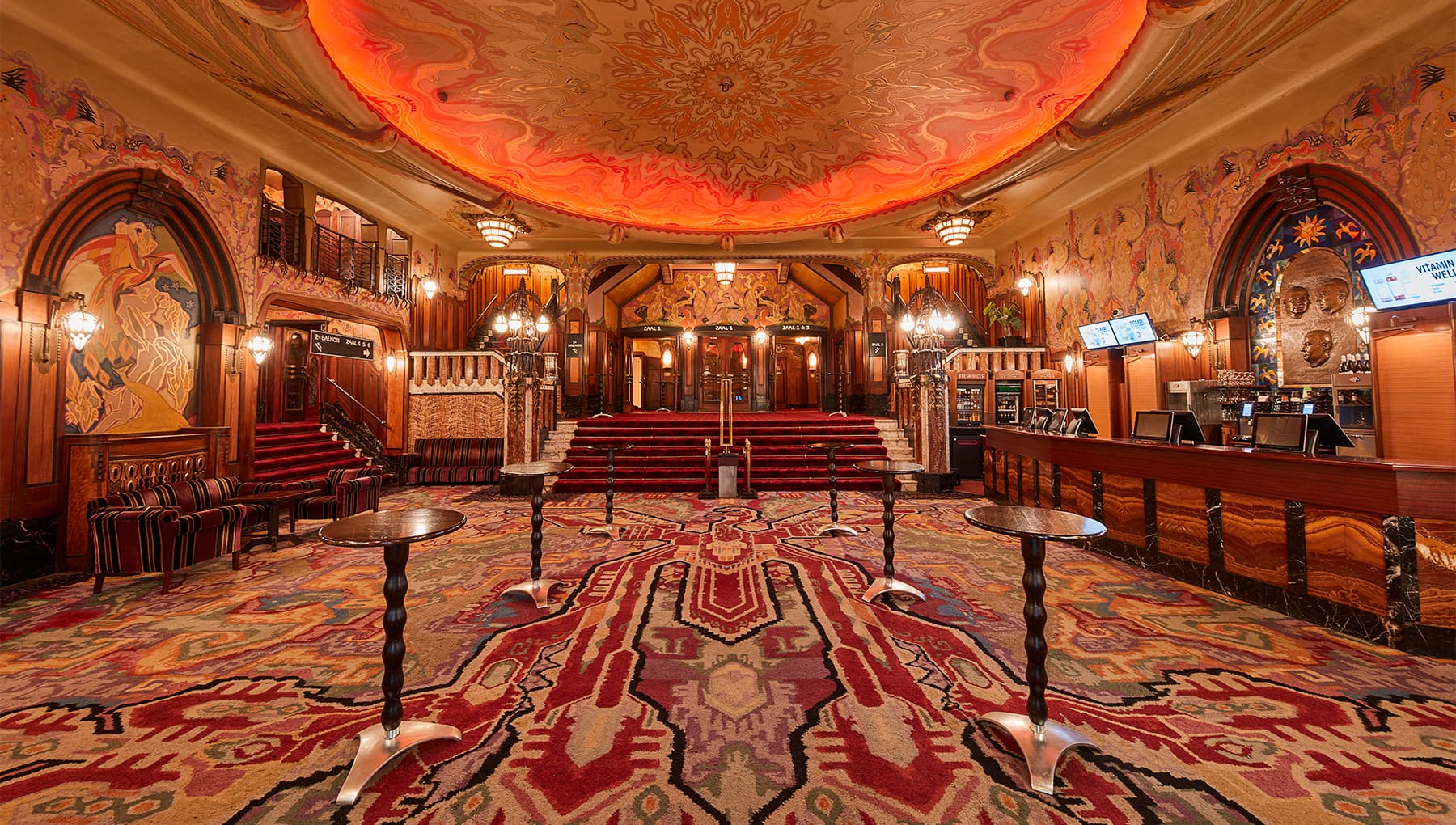 Koninklijk Theater Tuschinski, misschien wel de bekendste bioscoop van Nederland, is een iconische filmtempel in hartje Amsterdam, vlak bij het Rembrandtplein. Het gebouw valt direct op met zijn unieke mix van Art Deco, Art Nouveau en Amsterdamse School-architectuur en is makkelijk bereikbaar met het OV. Binnen biedt het een bijna magische sfeer. Vooral in de historische zaal 1 met zijn indrukwekkende details en plafond. Naast reguliere voorstellingen worden hier ook grote nationale en internationale premières gehouden, compleet met rode lopers en filmsterren. Een bezoek aan Tuschinski voelt altijd bijzonder en is een absolute must voor zowel filmliefhebbers als toeristen.