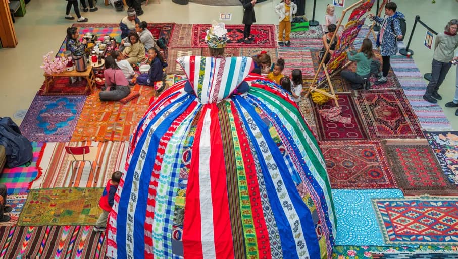 Het Kleed van Amsterdam is een verbindend stadsproject waarbij persoonlijke kleden van buurtbewoners samen één groot kleed vormen. Voor 50 jaar Surinaamse onafhankelijkheid ligt dit kleed in het Verzetsmuseum als ontmoetingsplek. Proef hapjes uit Chinees-, Hindoestaans- en Javaans-Surinaamse keukens, geniet van Marron-dans door Kula Skoro, doe mee met weef- en schminkactiviteiten en ga in gesprek met dialoogkaarten. Smita James presenteert het programma dat geïnspireerd is op het Surinaamse concept Ala Kondre (‘alle volken’), dat staat voor samenleven in diversiteit en verbondenheid tussen generaties.