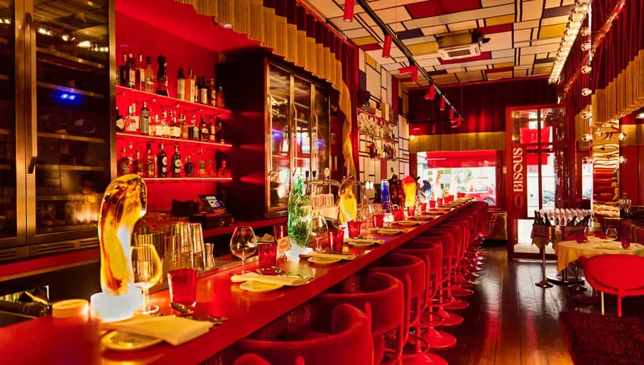 Bij Restaurant & Bar Bisous in De Pijp vind je een totaalbeleving. Of zoals ze zelf zeggen: een vleugje Parijse glamour. De hele zaak ziet eruit als een luxe club met booths, en in het weekend vind je er zelfs danseressen om het spektakel compleet te maken.
