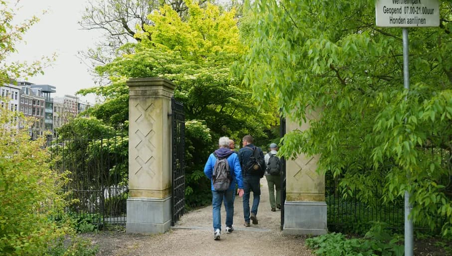 De grote parken kennen de meeste mensen wel, maar in veel buurten zijn ook kleinere parkjes waar je uitstekend in de zon kunt zitten en even een kopje koffie kunt drinken. ‘Dit plantsoen is een klein strookje park aan het water waar een paar bankjes staan. Het is een hele fijne rustige plek. Je kunt hier heerlijk picknicken, even tot rust komen met een kopje koffie of, bij mooi weer, kijken naar de vele langsvarende bootjes.’